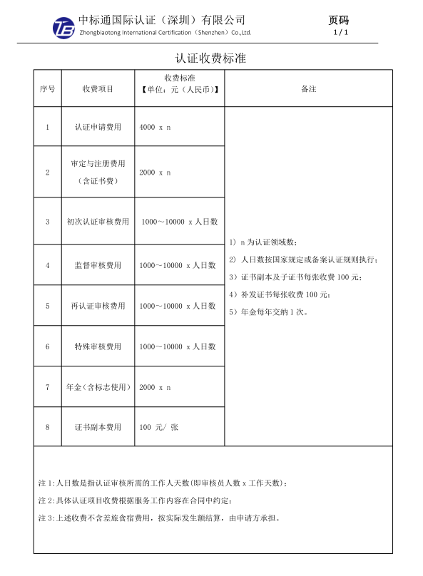 认证收费标准...